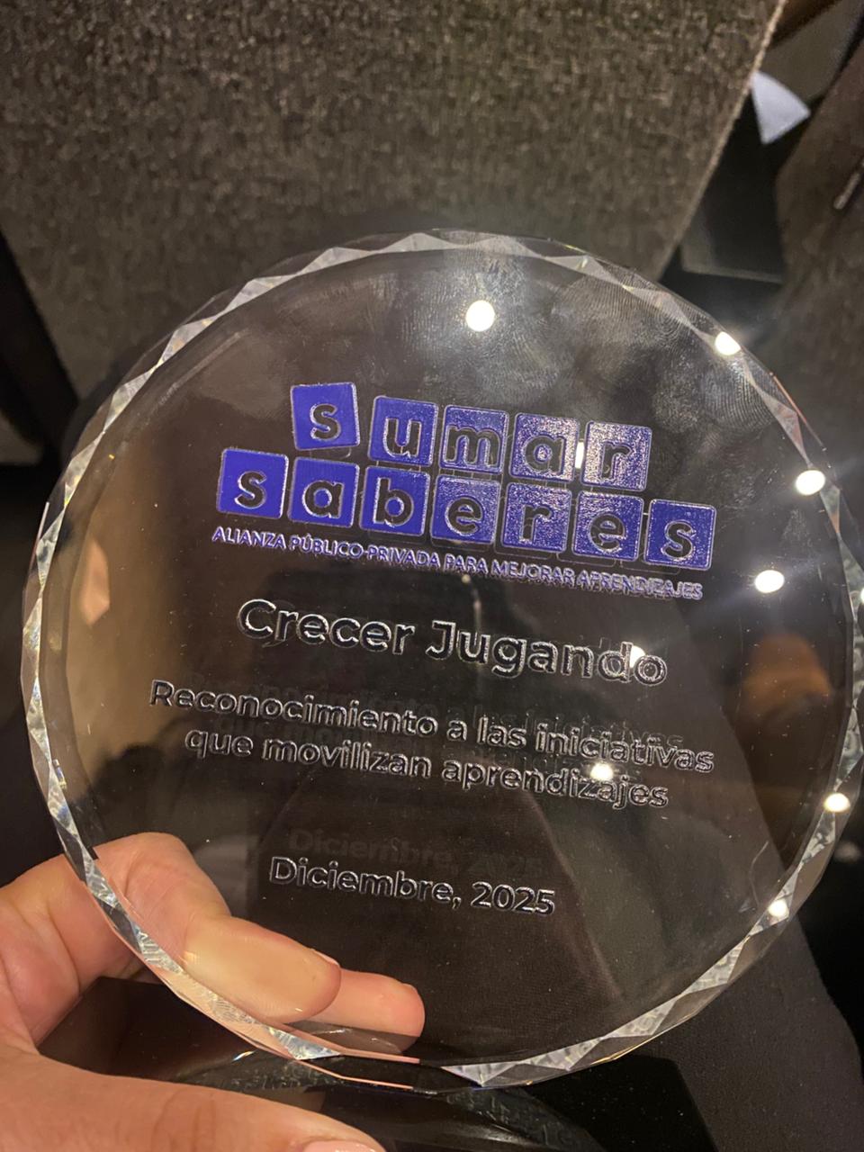 El pasado 11 de diciembre, en el seminario “De la evidencia a la escala, una alianza por los aprendizajes” de Sumar Saberes, el Programa Crecer Jugando fue reconocido como una de las 16 iniciativas nacionales que contribuyen de manera significativa al fortalecimiento de los aprendizajes y trayectorias educativas de niños y niñas.